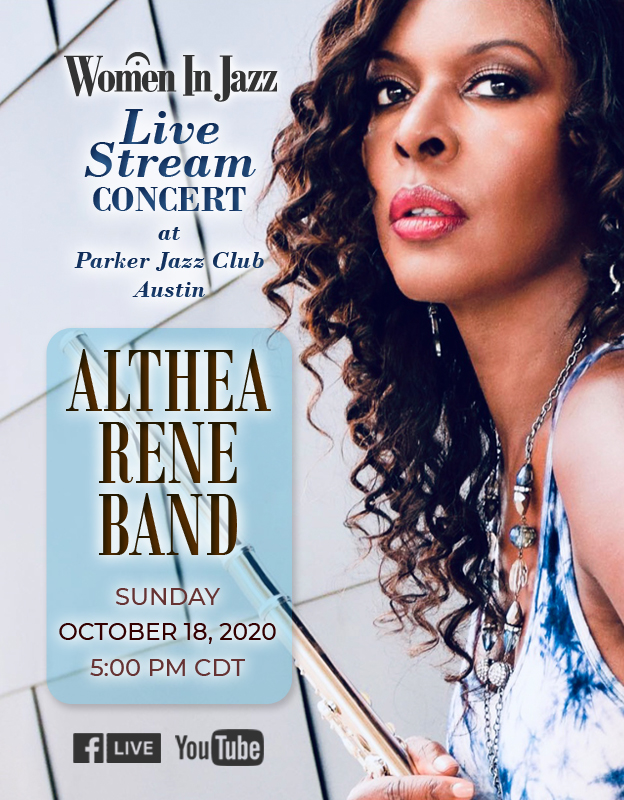 Althea René gained musical inspiration from her father Dezie McCullers (one of Motown’s original Funk Brothers). She has since developed her own creative style. Some regard her as a “master of her craft” and one of the world’s most exciting solo improvisational flutists. The multi-platinum and Grammy-nominated saxophonist Najee playfully refers to her as the “Maceo of the flute”. The live stream concert is free and accessible from Women Jazz Association, Inc. YouTube and Facebook pages. Donate $100 and be listed as Women in Jazz sponsor. Go to www.paypal.me/womeninjazz