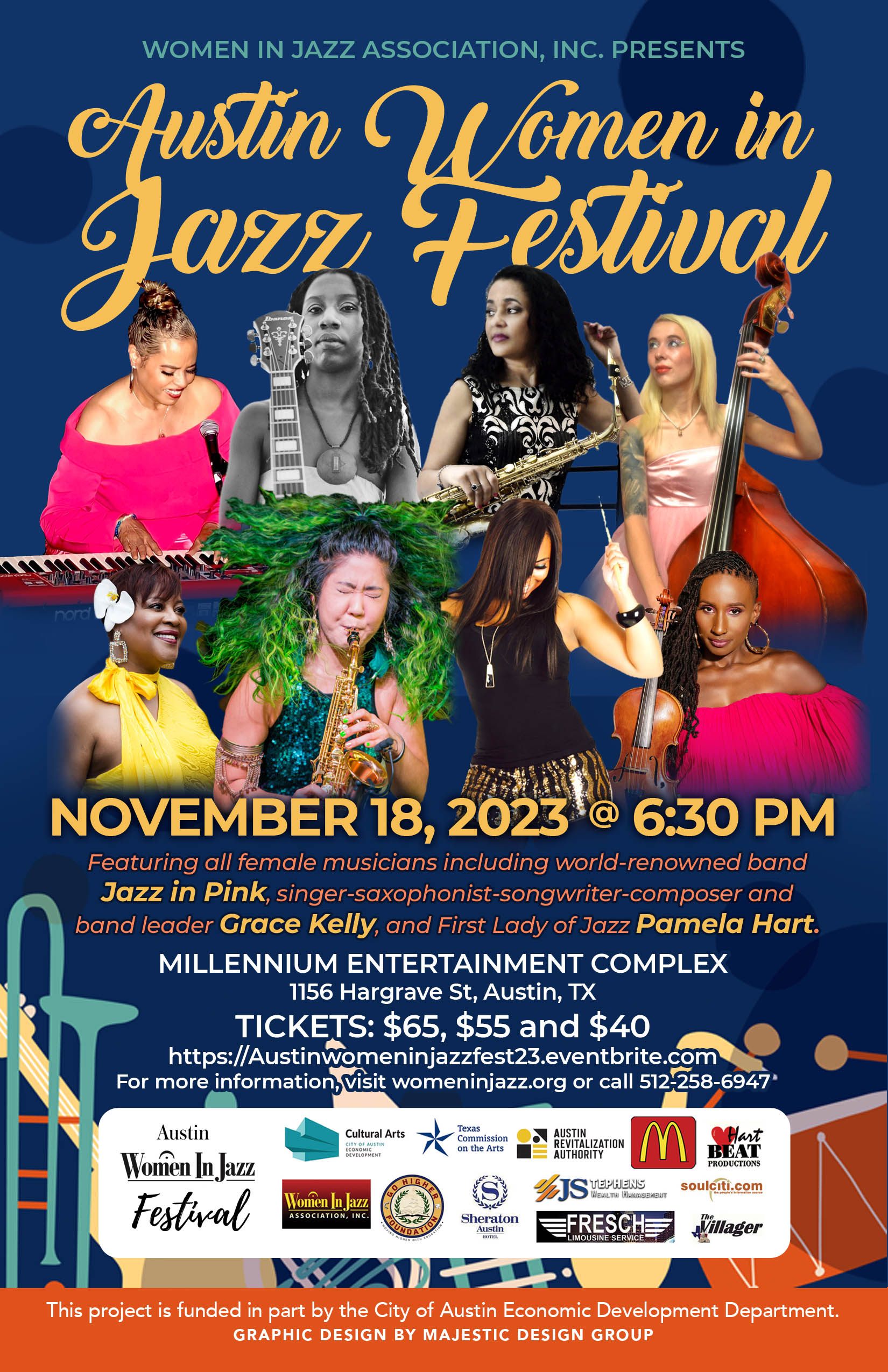 Women in Jazz Association presents the first annual Austin Women in Jazz Festival featuring Jazz in Pink, Grace Kelly, Pamela Hart on November 18, 2023 at 6:30 pm.