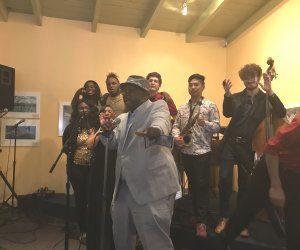 Dwayne Jones, MC for the Keepin’ It Real Jazz Youth Concert poses with participants in his classic keepin it real style.